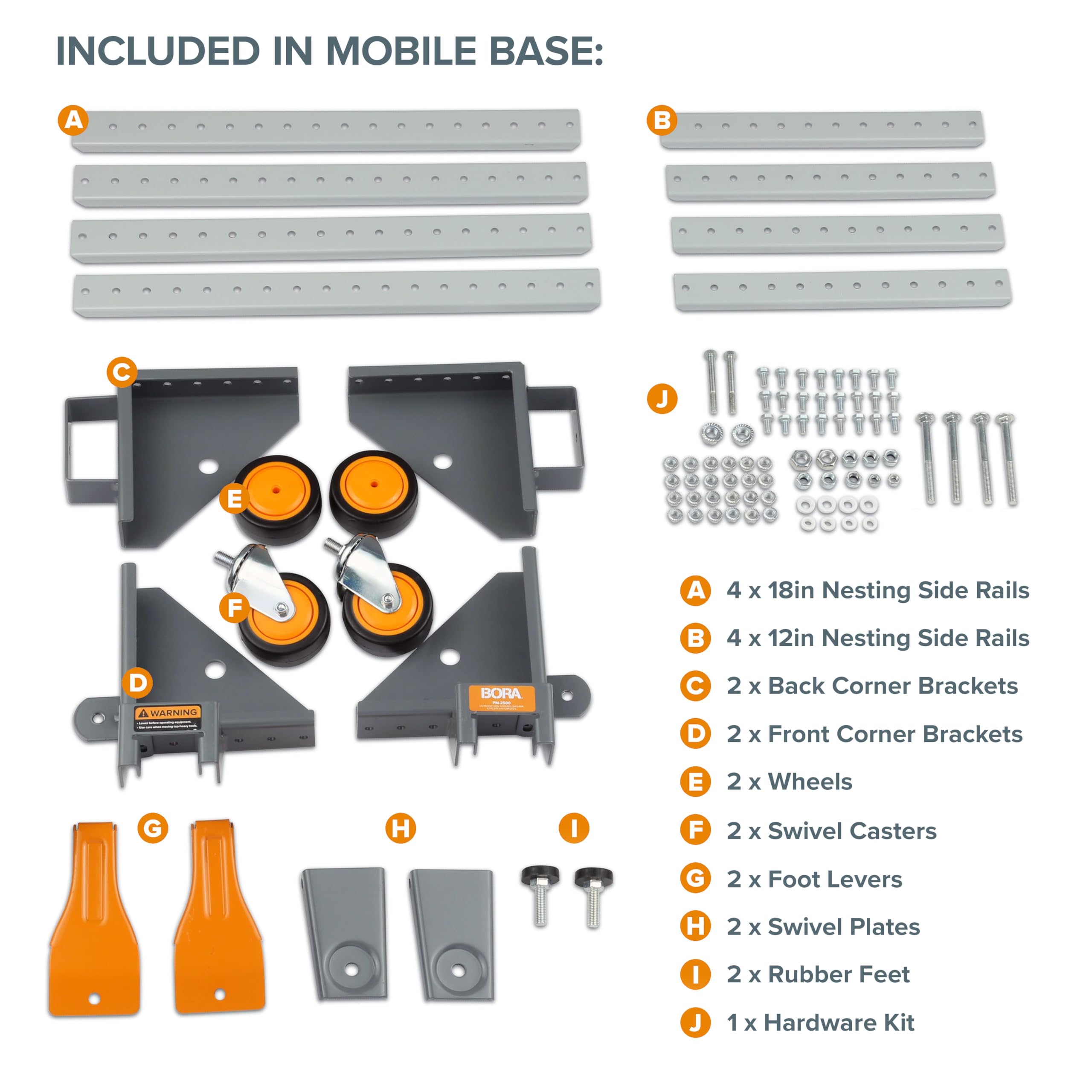 - Bora PortaMate Quality Construction: Professional grade universal mobile base engineered for workshop efficiency; table saw mobile base with durable steel frame; optional K1218 accessory rail kit available for larger footprint needs