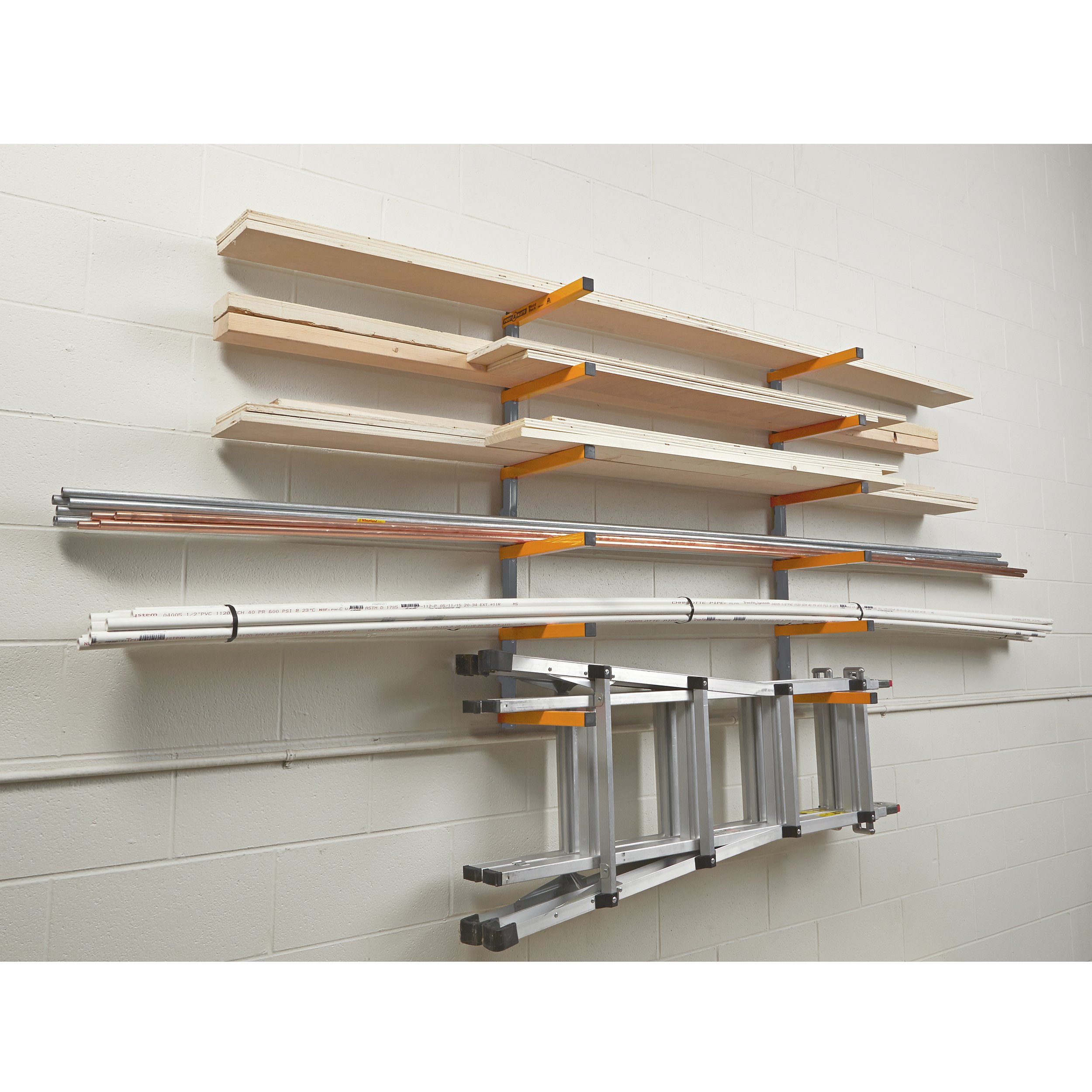 - Product 1: GET ORGANIZED: Store all your building supplies on the wall without taking up too much space in your garage, basement, shed, or outdoor workspace. This is a compact yet strong storage solution for lumber, firewood, gutters, PVC, pipes, ladders, skis, snowboards, golf clubs, construction tools, rugs, and much more.